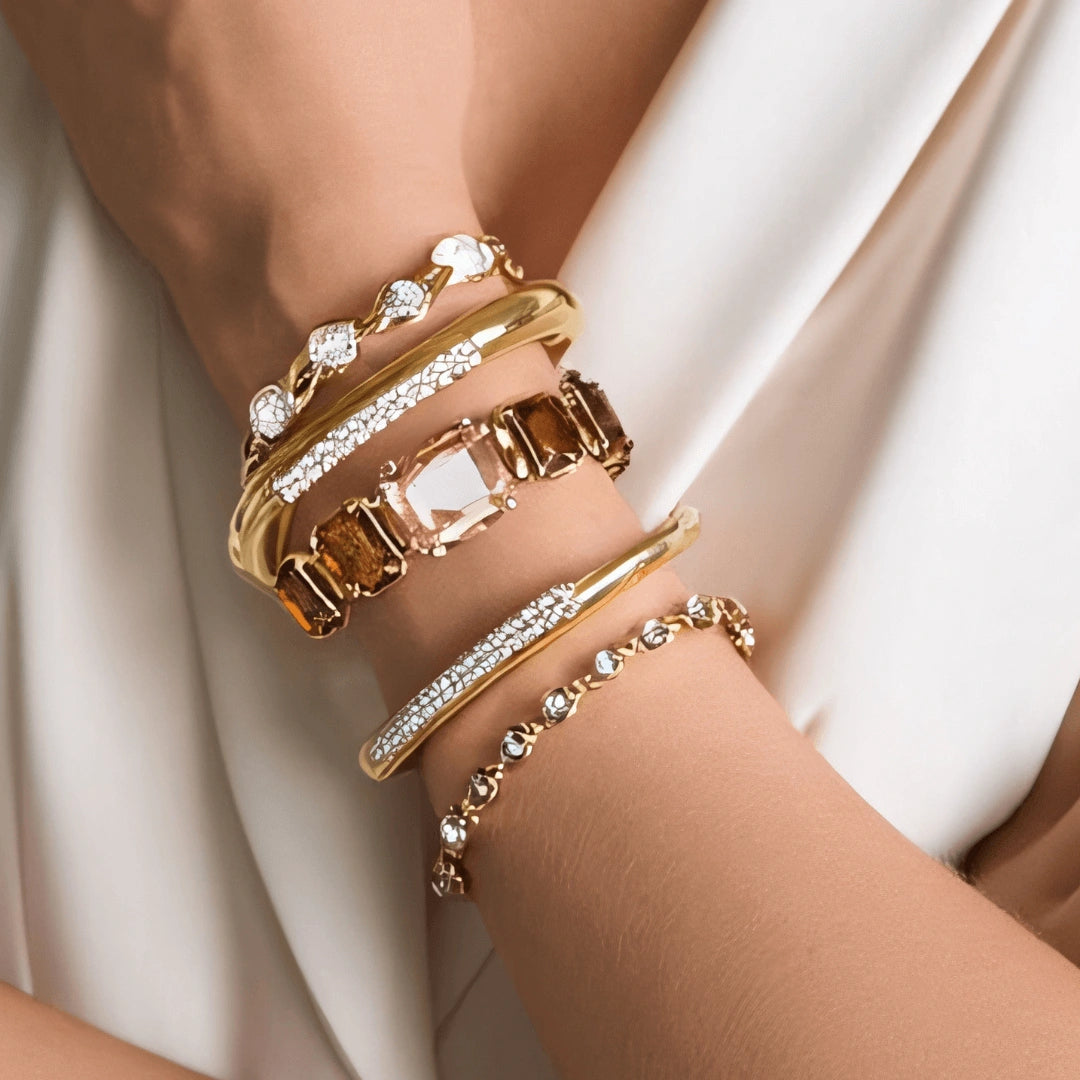 Em nossas peças, utilizamos metais de alta qualidade, como Banhado ouro, prata e aço inoxidável, além de pedras preciosas e semipreciosas cuidadosamente selecionadas, garantindo beleza e durabilidade.