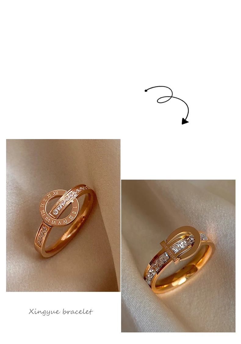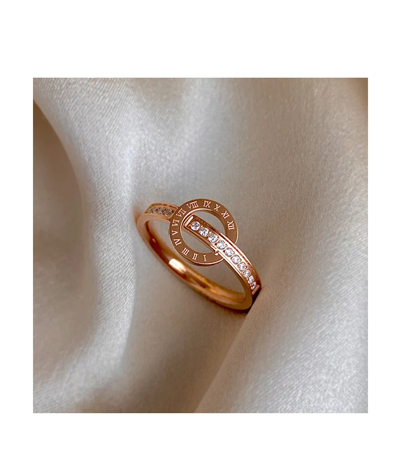 ZYNELLE Anel Círculo Romano Ouro Rosé Elegance – Luxo e Estilo Clássico
